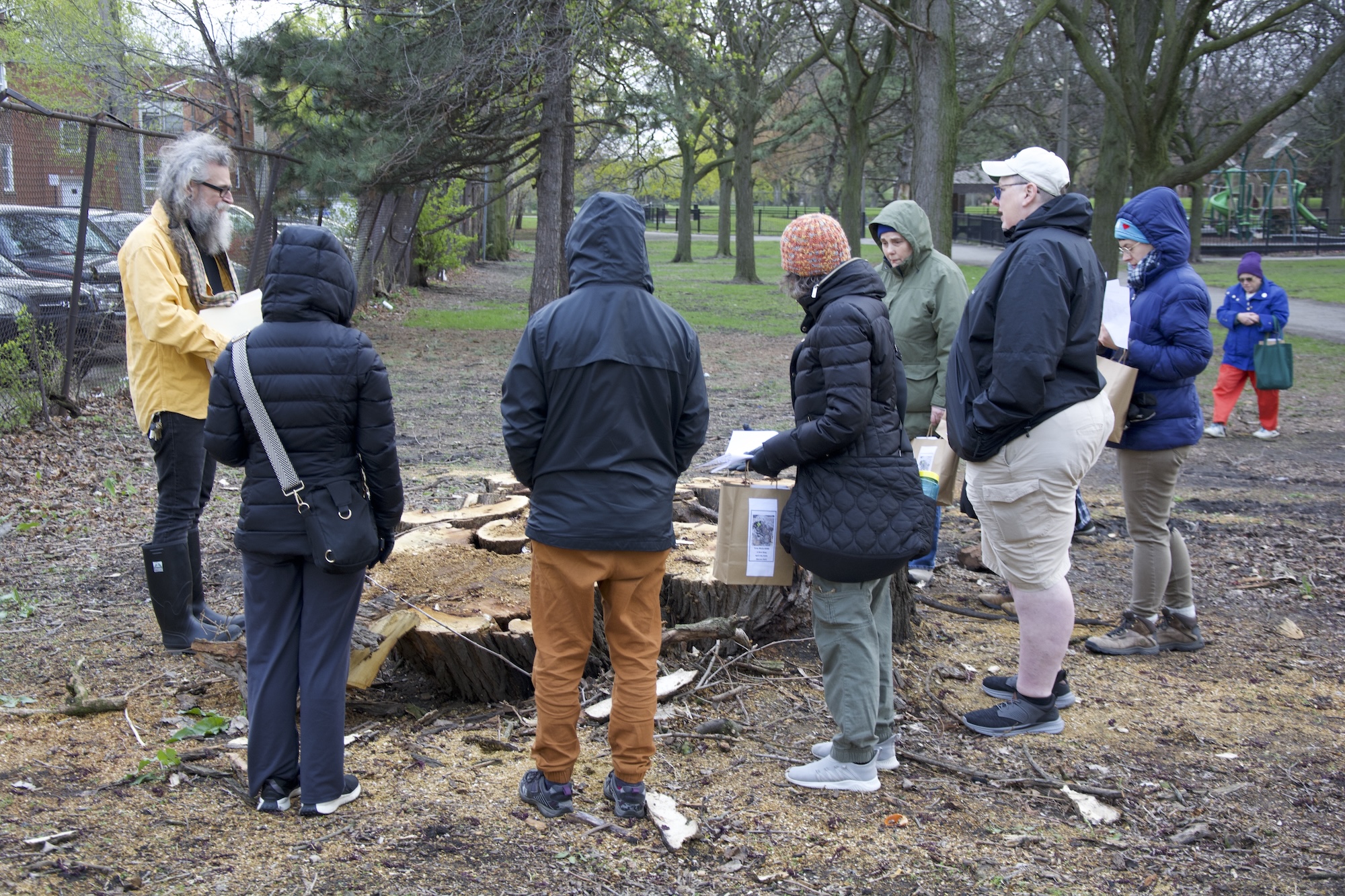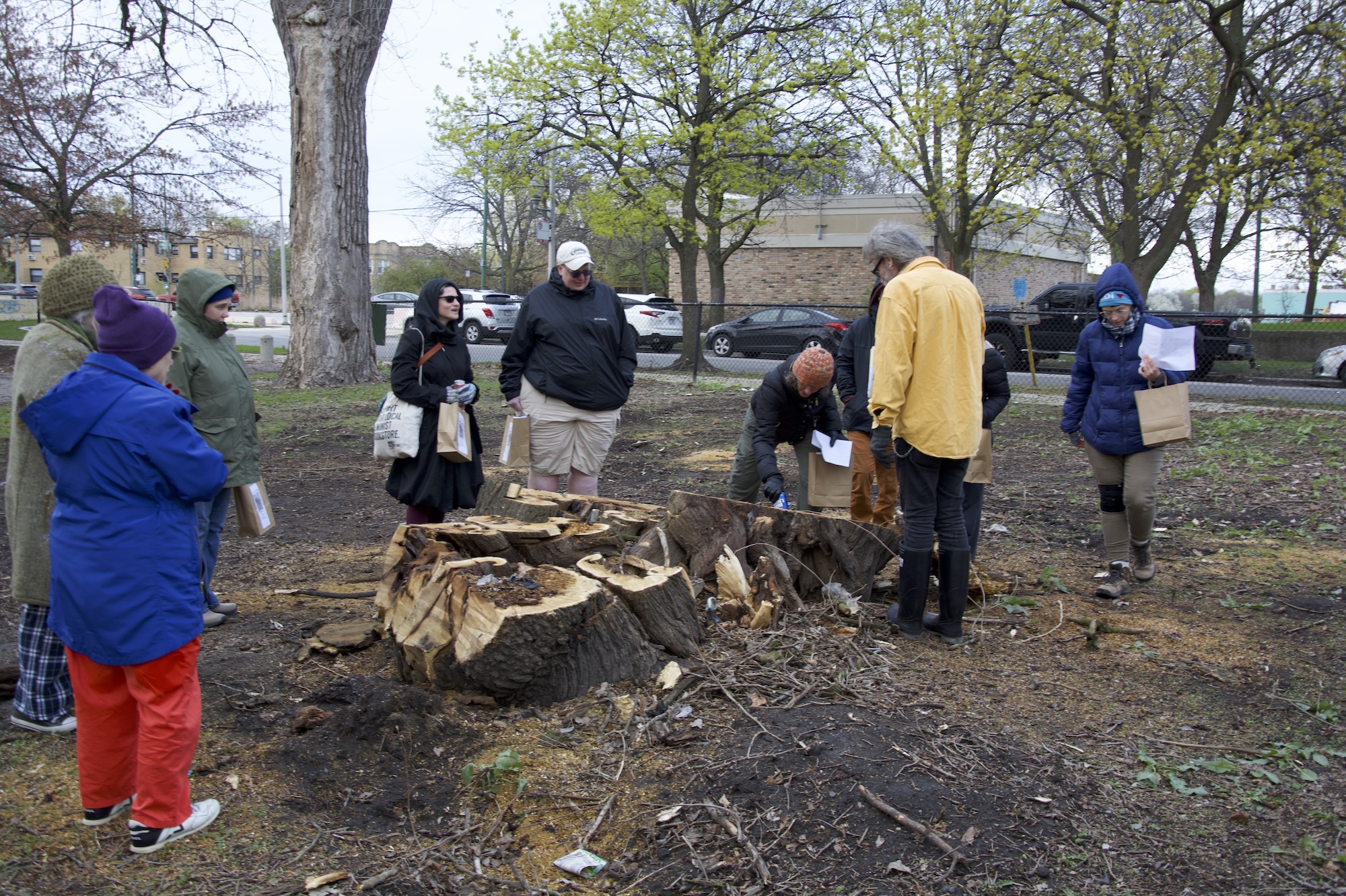 During our 2025 Arbor Day walk, the group discovered that a large tree which had been an intuitive gathering point in previous years was recently removed by the Park District. The cut trunk of the sprawling mulberry a core of growth that had taken place here for decades. Our 2026 gathering will take up where this change left off – a stump as a new launching point for interactions with our arboreal relations 🌳